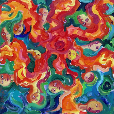 La figurazione s’ interseca con le visioni oniriche e psichedeliche che l’artista aveva sviluppato negli anni ‘80.