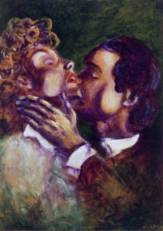Il linguaggio del corpo e la luce calda dei colori si fondono attraverso la spatola e la materia.