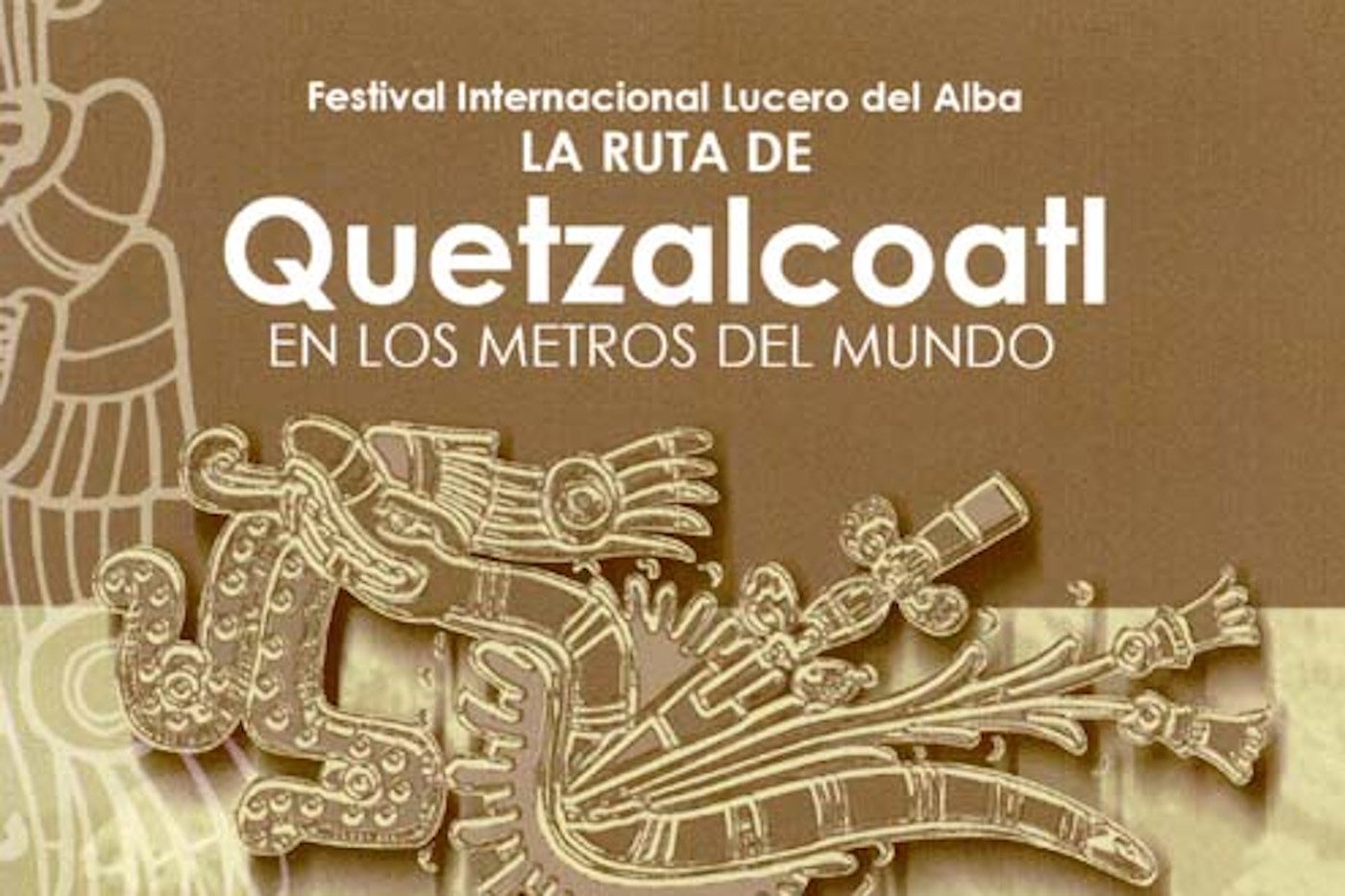 Festival “LUCERO DE ALBA”  Incontro internazionale di arte muraria “La Ruta de Quetzacoatl en los Metros del Mundo”  L’università tecnologica di Tula -Tepeji, l’Università Autonoma Metropolitana di Città del Messico e il Sistema di Trasporto Collettivo Metro di Città del Messico hanno organizzato e concepito gli eventi e l’incontro di muralismo che si è realizzato all’interno dell’Università su pannelli di legno.Si è formato un gruppo internazionale di artisti che hanno lo scopo di portare la pittura murale pubblica nel mondo, si è concepito per la prima volta il “Murales viaggiante” , cioè un murales che segue la gente, la quale non deve andare in un luogo fisso per ammirarlo , ma è il murales che si sposta.Le opere sono state esposte all’interno dell’Università di Tula, presso la Galleria Iztapalapa dell’Università Autonoma Metropolitana di Città del Messico , nella Stazione di san Lazzaro nella Metropolitana di città del Messico ed in altre sedi.Il Festival riunisce sedici artisti provenienti dall’Austria, Argentina, El Salvador, Ecuador, Repubblica Dominicana, Spagna, Cile, Stati Uniti, Germania, Francia, Italia e Messico. I pittori realizzeranno entro un murale con tema ”Quetzacoalt o Tlahuizcalpantecuhtli,che in castigliano significa “lucero del alba”. Le stesse opere saranno esposte in diverse stazioni del metro in Messico e all’estero”.
