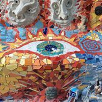 DUALITA’ Mosaico sulle scale in cui vice la dualità , il contrasto come in tutta la nostra esistenza e sulla nostra terra, tutto è sotto la legge della dualità e separazione , i gradini fungono da unione Mosaici e Murales scultorici Gli elementi e le energie della terra, dalla materia allo spirito